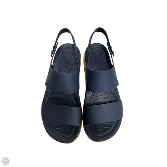 Sandals Heels Platform By Crocs In Navy, Size: 6