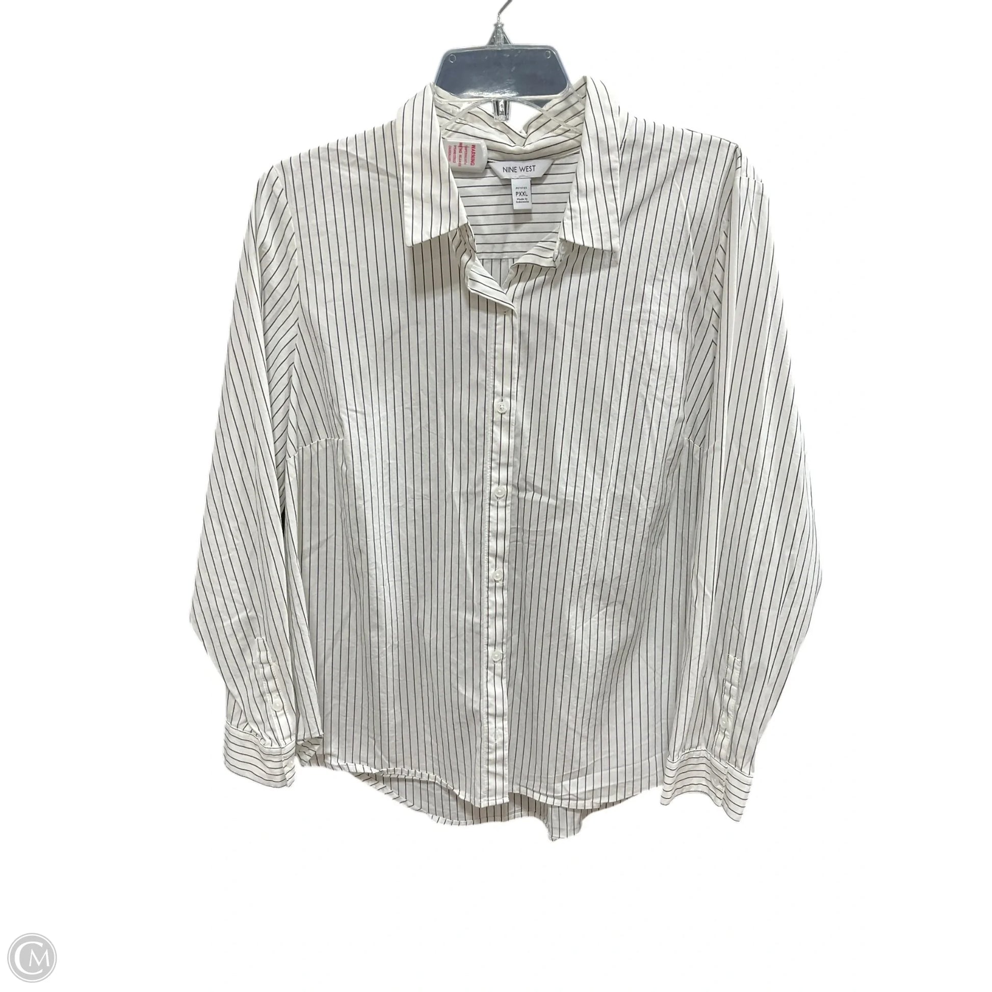 Blouse Long Sleeve By Nine West In Striped Pattern, Size: Xxl