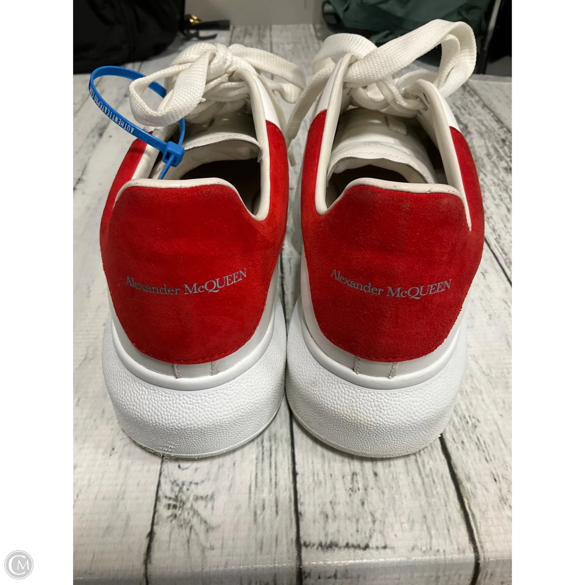 Shoes Luxury Designer By Alexander Mcqueen In Red & White, Size: 8.5