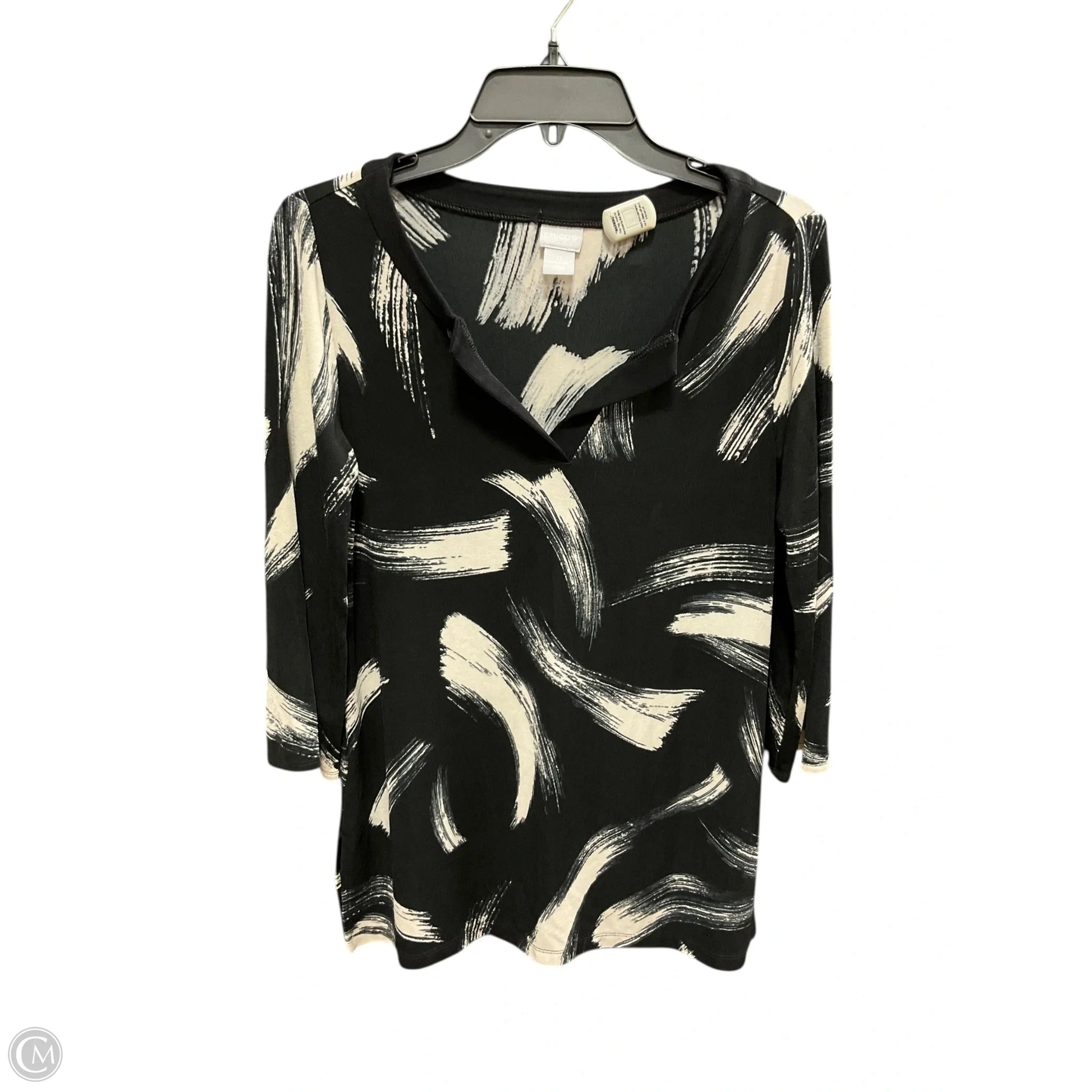 Top 3/4 Sleeve By Chicos In Black & White, Size: S