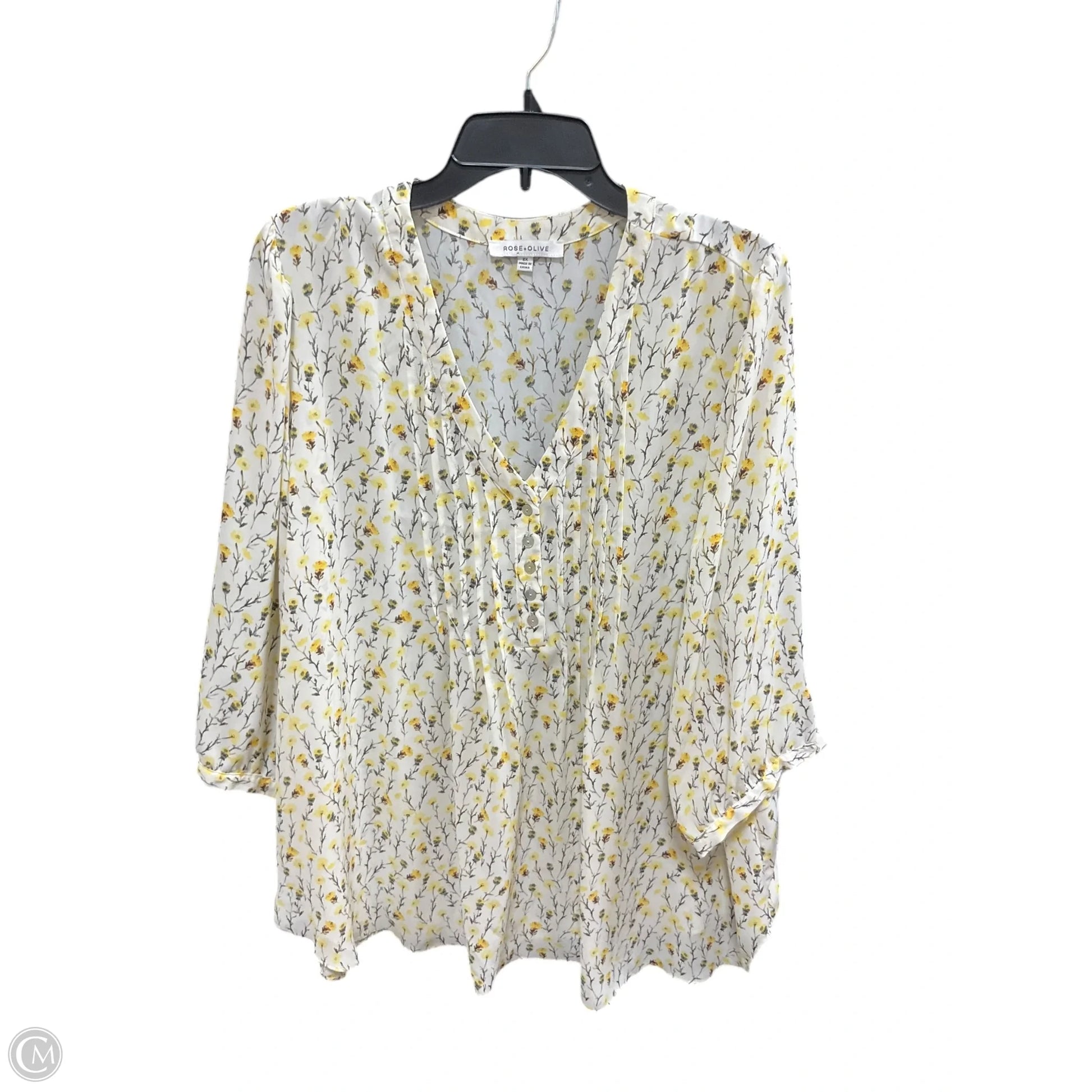 Top 3/4 Sleeve By Rose And Olive In White & Yellow, Size: 2x