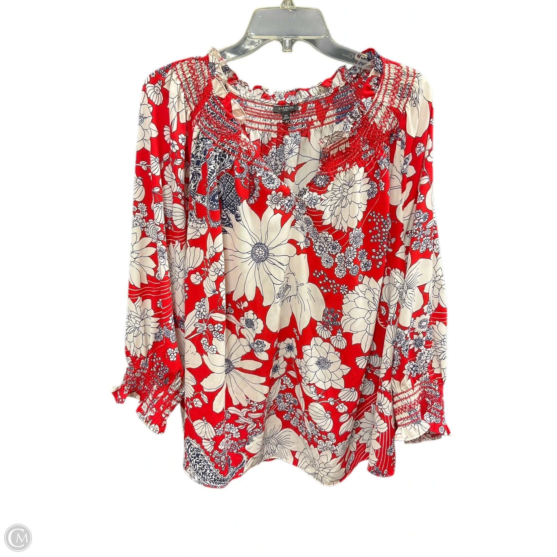 Top Long Sleeve By Talbots In Red & White, Size: 2x