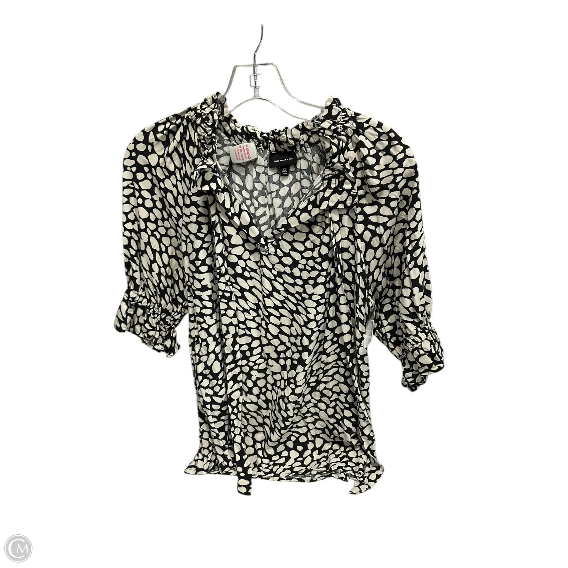 Top Short Sleeve By Who What Wear In Black & White, Size: Xs
